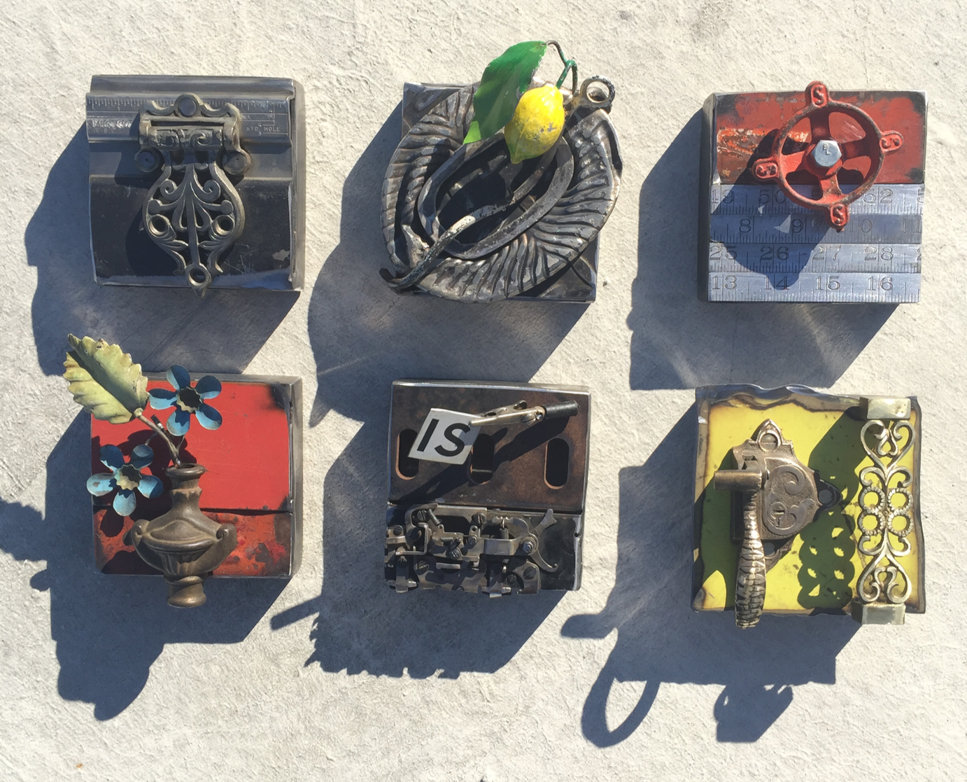 We began by collecting from every employee 10 words to describe what they loved about each person leaving. Inspired by that, we then worked with a local sculptor, Linda Raynsford, to craft bespoke gifts. We shared the survey results with Linda and spent time her studio, sorting through her storehouse of found objects to source things that suited each individual. We then stepped away and left her to tap into her creativity and assemble a small sculpture for each person. What she created was inspired (see image below). To top it off, we worked with a graphic artist to design wrapping paper for each gift, drawn from the survey results of the things we loved.